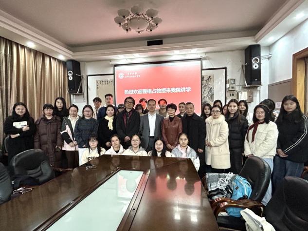 (通讯员:徐嘉璐)12月21日晚,教育部长江学者特聘教授、中山大学教授程相占应邀在公司砂子坳校区影视鉴赏室开展一场题为“生生美学:中华美学精神的创造性转化与创新性发展”的学术讲座。本次讲座由公司经理瞿建慧主持,刘泰然教授、何小平教授、彭继媛教授、罗琼副教授、崔淑兰博士、刘熹桁博士参会,2024、2025级中国语言文学专业(文学方向)、学科教学(语文)专业全体硕士研究生共同参加。