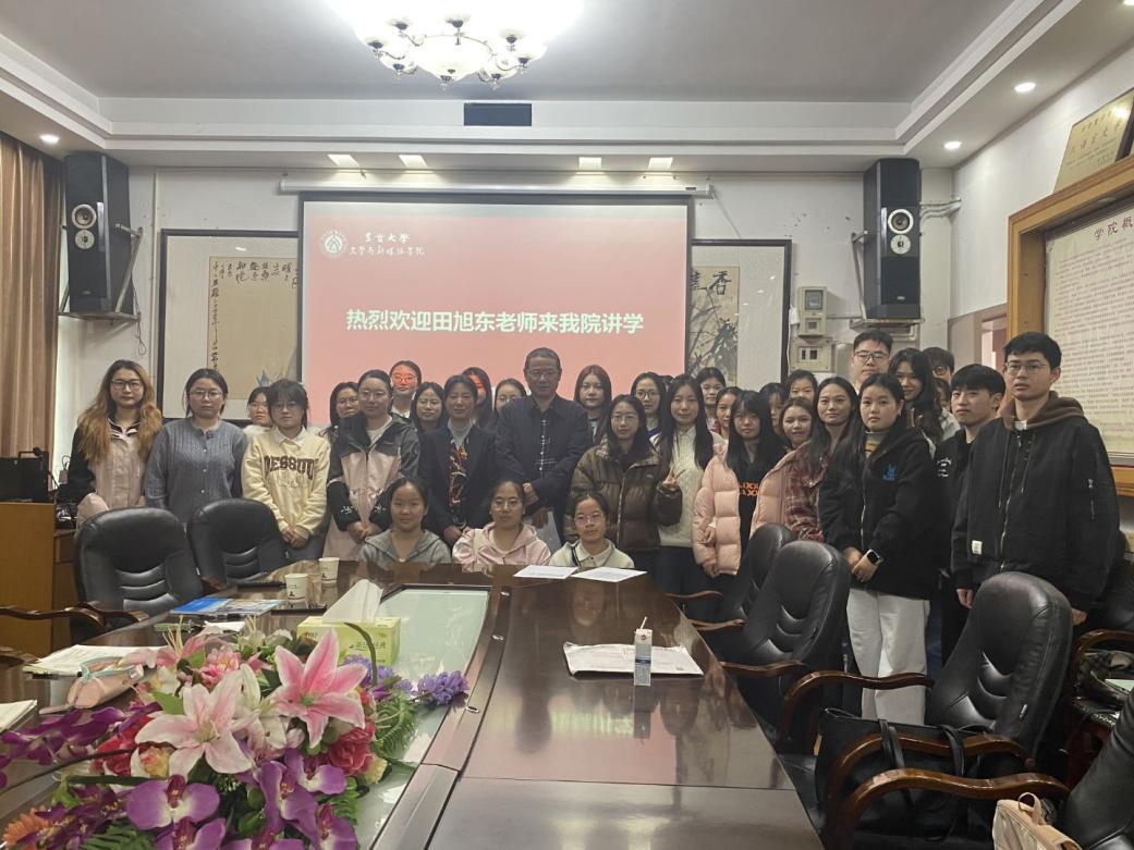 (通讯员:徐嘉璐)11月24日下午,湘西州高中语文学科带头人、湘西州民族中学老师田旭东应邀在公司影视鉴赏室开展“大道至简——我的语文教学故事”教育讲座。本次讲座由学位点负责人邹晓玲教授主持,学科教学(语文)专业和中国语言文学专业全体研一员工共同参加。