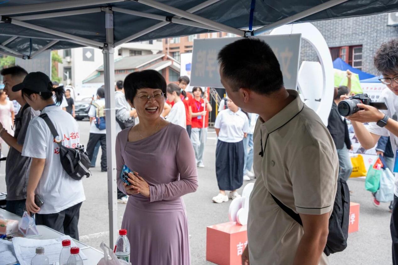 在学院迎新点前,学院设置了温馨的报到流程指引宣传展板。新生家长们纷纷来到新生班主任队伍、团学活动、以赛促学工程等宣传展板前驻足,并在学院报到打卡点前进行拍照打卡。