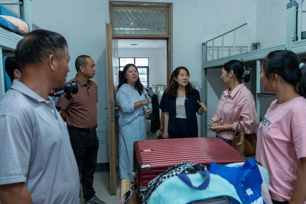 迎新期间,公司党委书记杨帆、经理瞿建慧带领院班子成员、班主任老师等坚守迎新工作现场与新生及家长亲切交流,下到员工宿舍看望新生入住情况。21日下午,召开第一次班会,学院领导、新生班主任与员工见面。