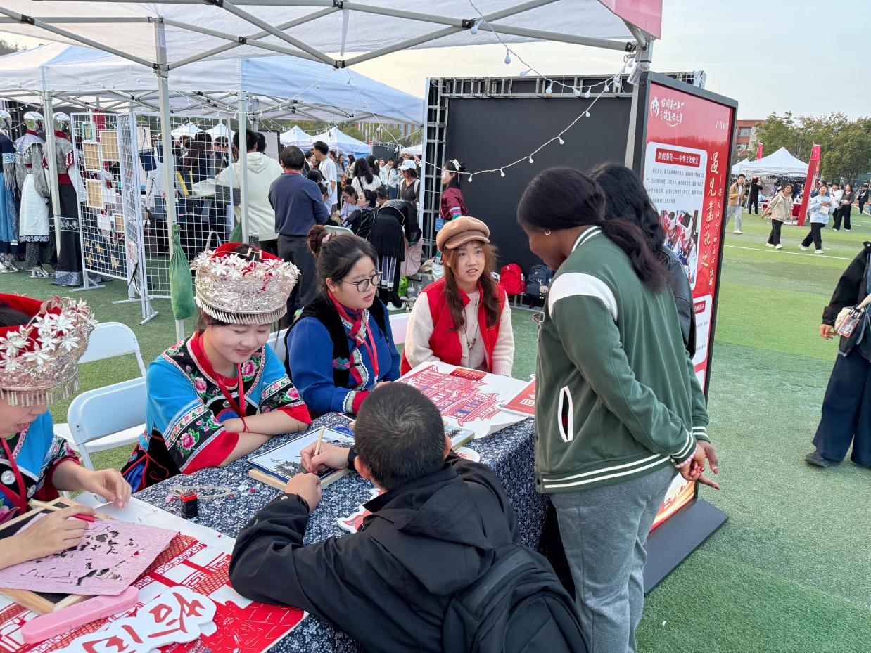 本网讯(通讯员 张雨童)11月5日,由湖南省民宗委、省教育厅、团省委联合主办的“恰同学少年 筑复兴之梦”——2025年湖南省高校铸牢中华民族共同体意识现场展示体验暨文艺展演活动在中南大学落幕,文学与新媒体学院师生创作的短视频《跨越山海的课堂》荣获湖南省高校铸牢中华民族共同体意识短视频大赛二等奖,师生非遗剪纸作品“踏虎凿花”在非遗现场展示获得好评。两项成果集中彰显了学院在跨文化传播、非遗创新与实践教学领域的雄厚实力。